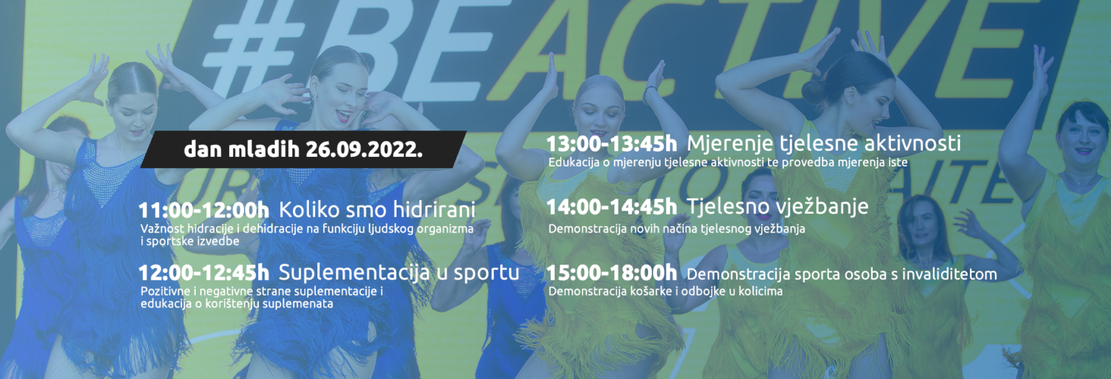 Opis aktivnosti: Aktualnim vrstama tjelesnog vježbanja upoznati sudionike s novim načinima tjelesnog vježbanja i na taj način potaknuti studente i građane na tjelesnu aktivnost koja ima velike dobrobiti za tjelesno i mentalno zdravlje.